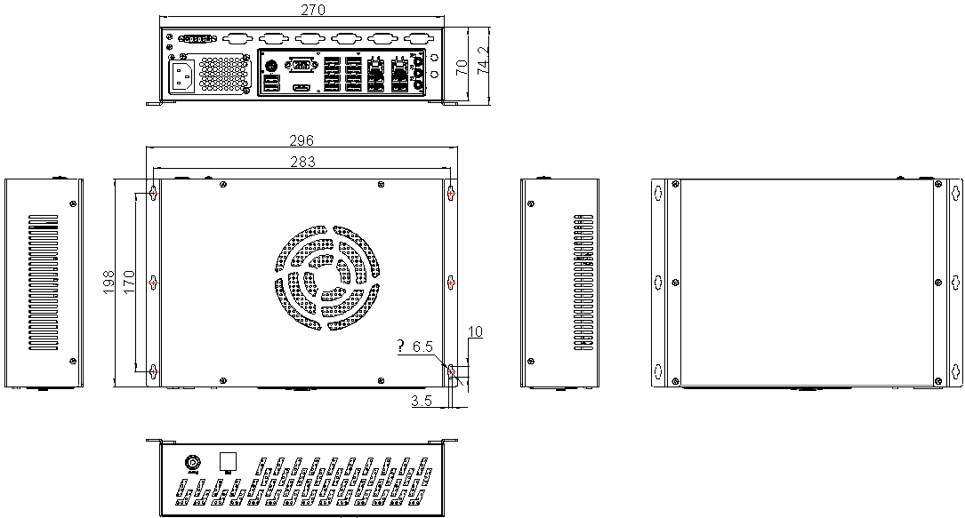 機箱尺寸 270mm(寬) * 198mm(深) * 70mm(高)