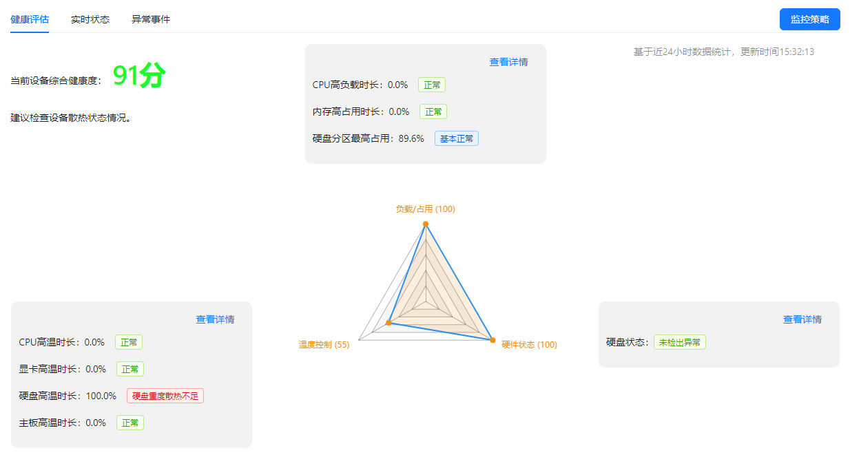 | 支持對IPC硬件狀態進行監測,支持本地存儲。 | 從IPC多維度動態計算健康評分,精準定位潛在故障點 | 支持創建備份任務,支持配置任務名稱,備份源位置、鏡像存放位置 | 具備串口及GPIO調試工具 | 搭配IPC大管家,能夠將設備監測數據及異常事件上傳到IPC大管家 |