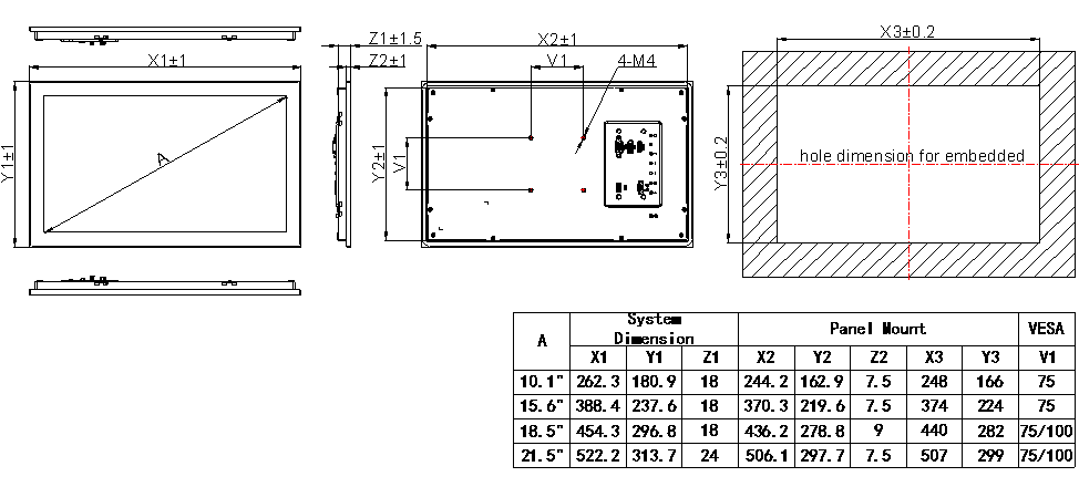 | 顯示尺寸 | 10.1" | 15.6" | 18.5" | 21.5" |