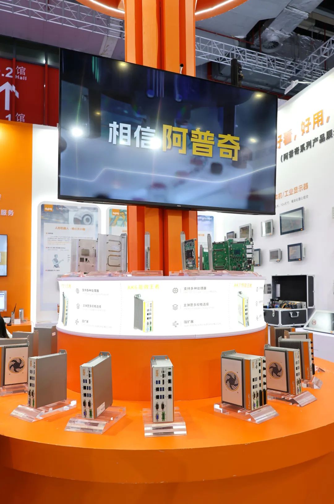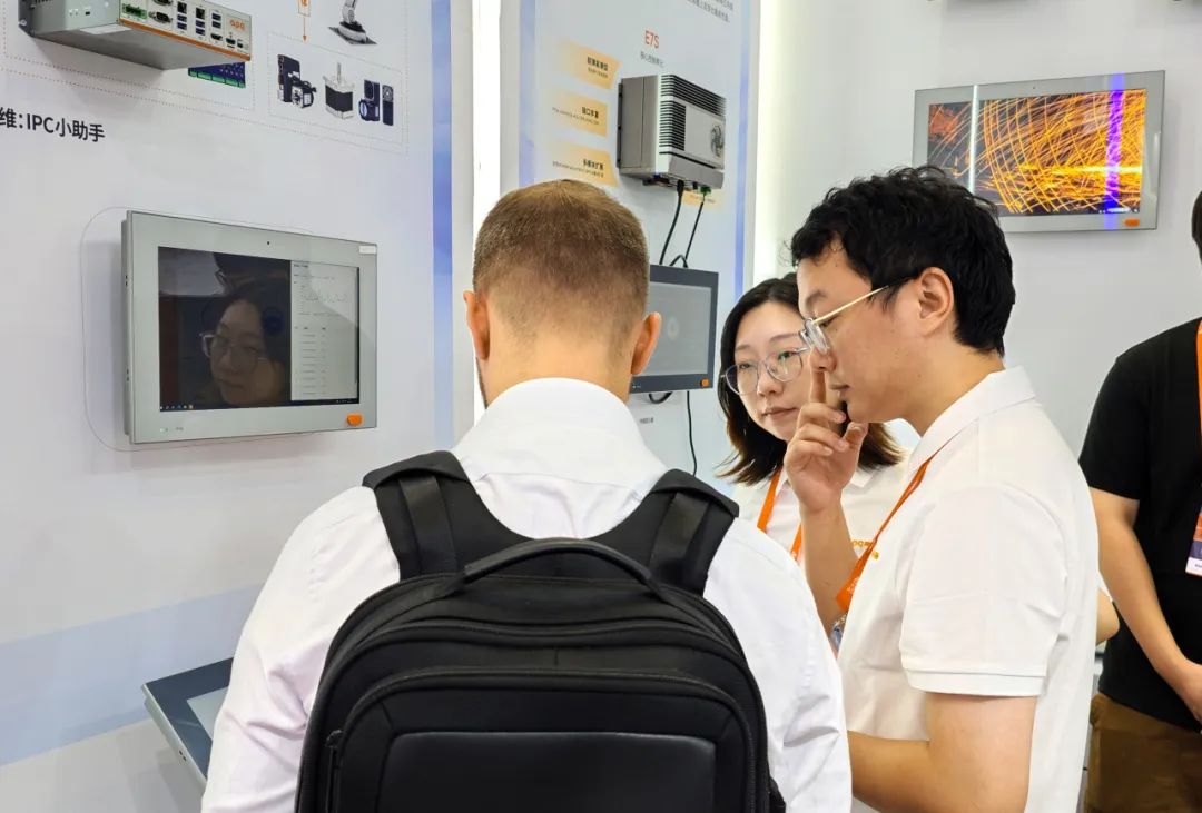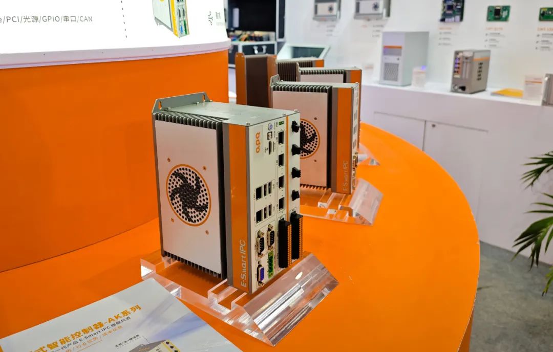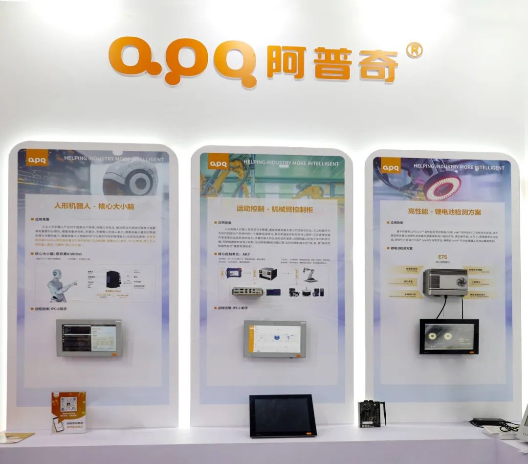 展位上通過動態DEMO的形式,阿普奇展示了產品在機器人、運動控制和機器視覺三大場景中的應用方案,凸顯出阿普奇產品在場景中的應用優勢,阿普奇E-Smart IPC產品矩陣以開創性的設計理念及其靈活全面的功能規劃,提供完善的解決方案為客戶解決應用難題。