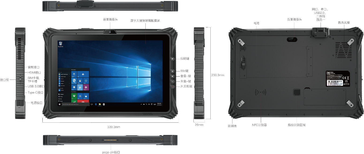 阿普奇TPP-122CQEA是一款12.2英寸工業(yè)手持平板電腦,配備TFT-LCD顯示屏,分辨率1920×1200,亮度650 cd/m2,支持10點(diǎn)投射電容觸摸,覆蓋鋼化玻璃,硬度≥7H。搭載Intel? Core? i5/i7移動(dòng)處理器,配備16GB DDR4L內(nèi)存與128GB SSD存儲(chǔ)。接口包括USB Type-A、Type-C、千兆以太網(wǎng)、RS232、HDMI Mini及SIM卡槽等。具備前置2MP攝像頭、防水揚(yáng)聲器、G-sensor、Wi-Fi 6、藍(lán)牙5.1、4G LTE(可選5G),支持可選NFC、二維碼掃描及指紋開機(jī)登錄。采用熱插拔電池(700mAh+6300mAh),運(yùn)行Windows 10/11系統(tǒng),尺寸339.3×230.3×26mm,重量1500g,IP65防護(hù),工作溫度-20~60°C,抗振動(dòng)與跌落,適用于手持及車載場(chǎng)景。